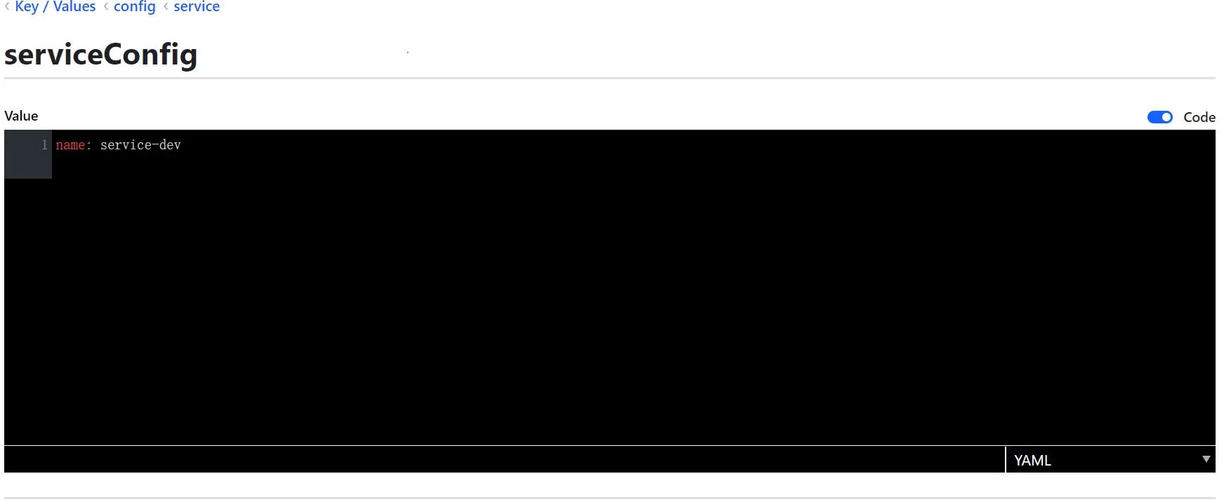 可以看到,基于路径config/service/中创建了key为serviceConfig,value为name: service-dev属性