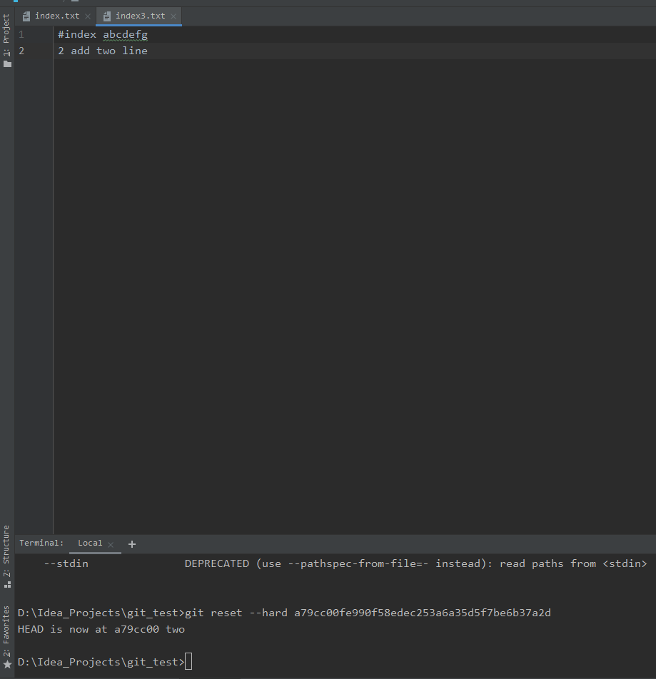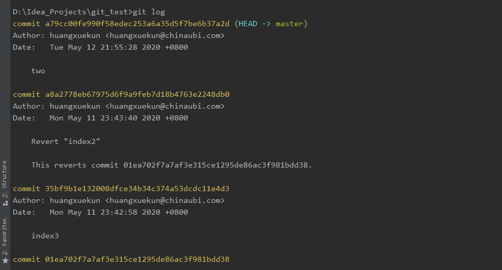 原理:git reset的作用是修改HEAD的位置,将head指针指向之前存在的某个版本 适用场景:如果想恢复到之前某个提交的版本,且那个版本之后提交的版本我们都不想要了,就可以用这种方法 具体操作: