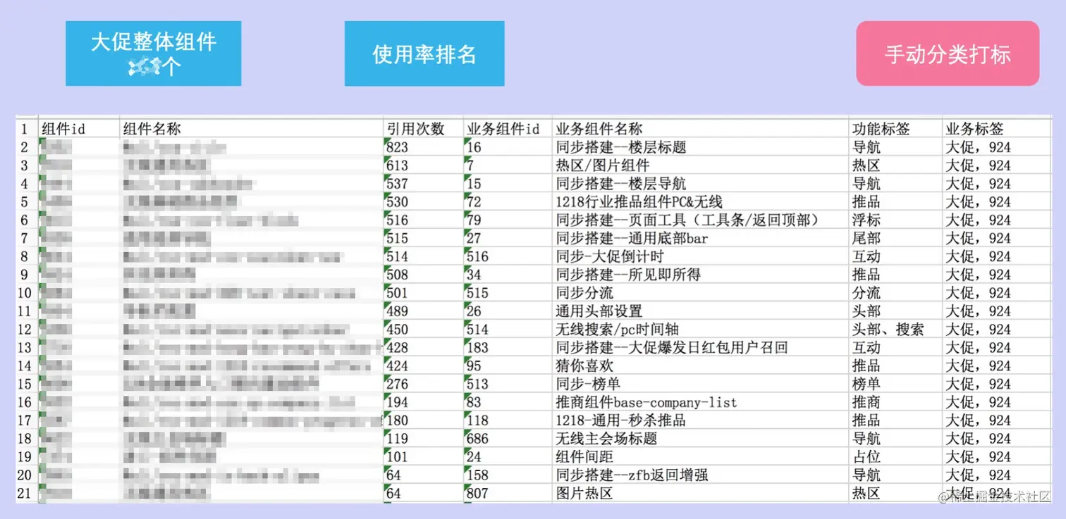 2020 年 331 大促期间,会场的无线端的组件技术栈由 A 全面转向 B ,意味着往期大促中使用的无线组件都面临迁移改造的成本。圈选出大促业务中的高频组件作为优先迁移对象,低频的可以 KO 使用价值决定是否有必要,大大减少升级改造工作量,保证了 331 大促的工期可控性。