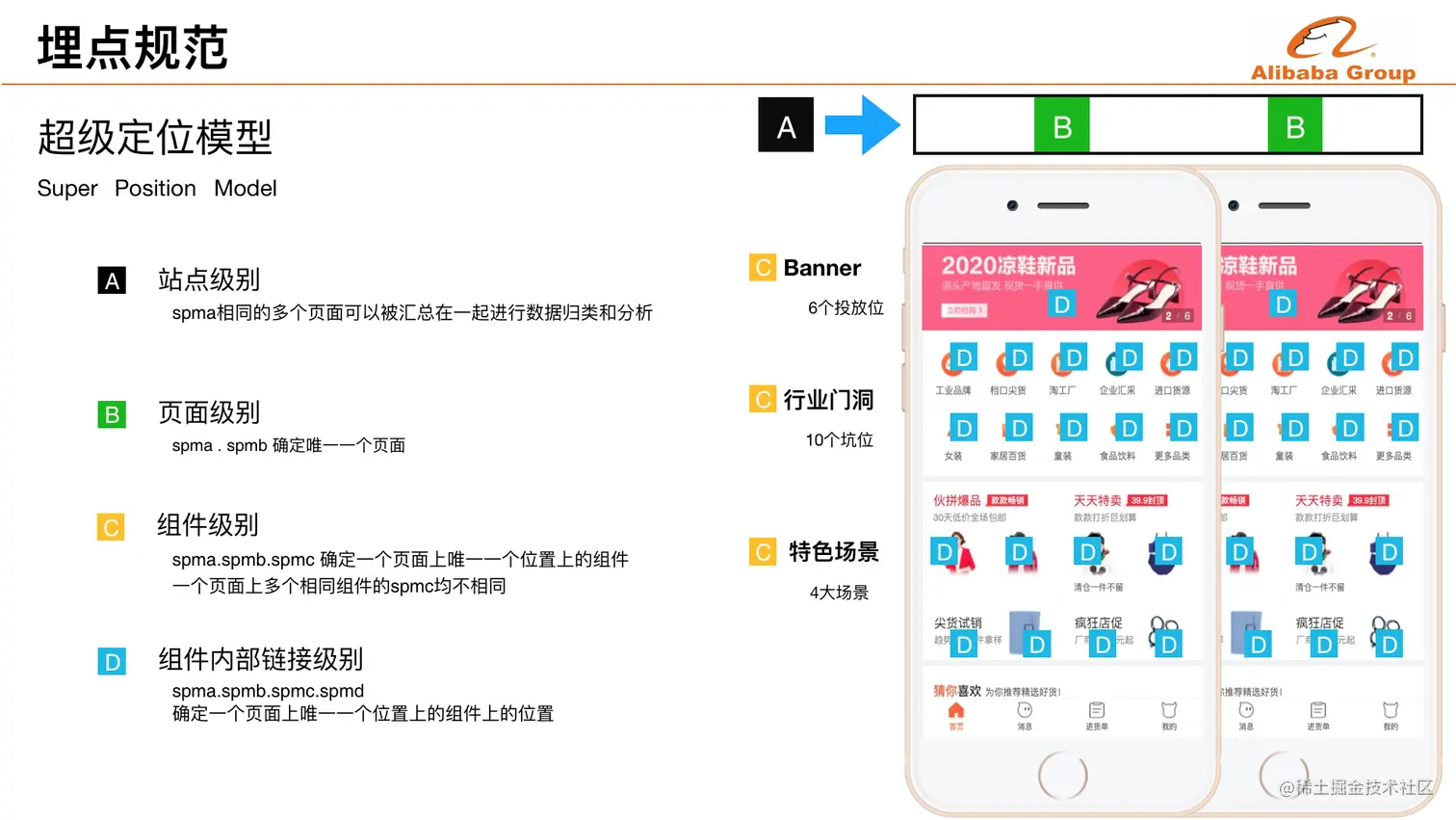 创建页面确定了页面所在的站点,这就定下了spma(站点)和spmb(页面自身);搭建过程中使用了一个组件,确定了spmc位;页面发布后,线上运行时,每个渲染出来的可点击的超链接,即生成了spmd。