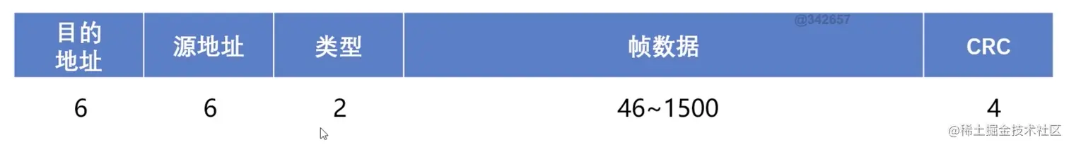 - 如果是 RARP 请求/应答,则 类型为 8035,帧数据 = RARP 请求/应答(28字节) + PAD(18字节)