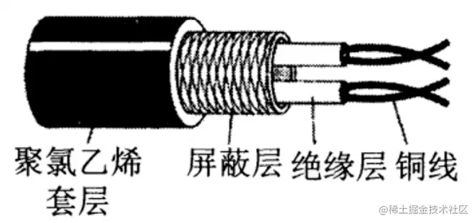 不同于 无屏蔽双绞线,其在第二层 加了屏蔽层。