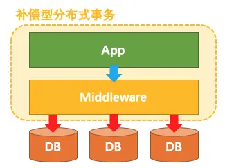 补偿型 事务处理机制构建在 事务资源 之上(要么在中间件层面,要么在应用层面),事务资源 本身对分布式事务是无感知的。