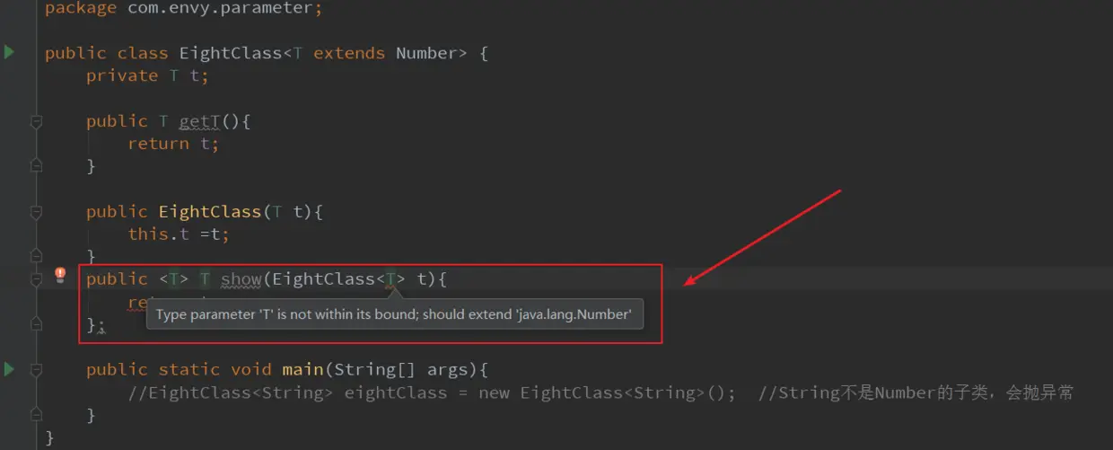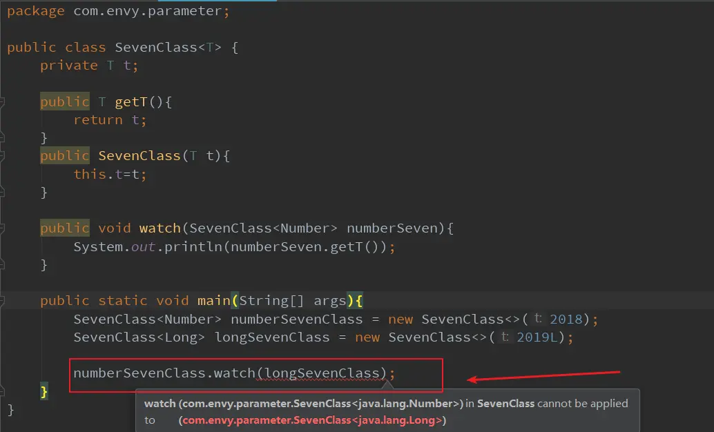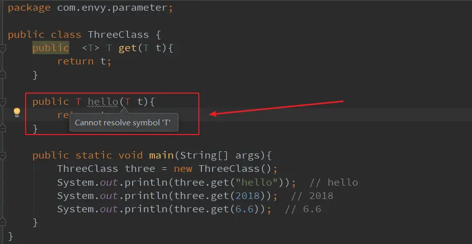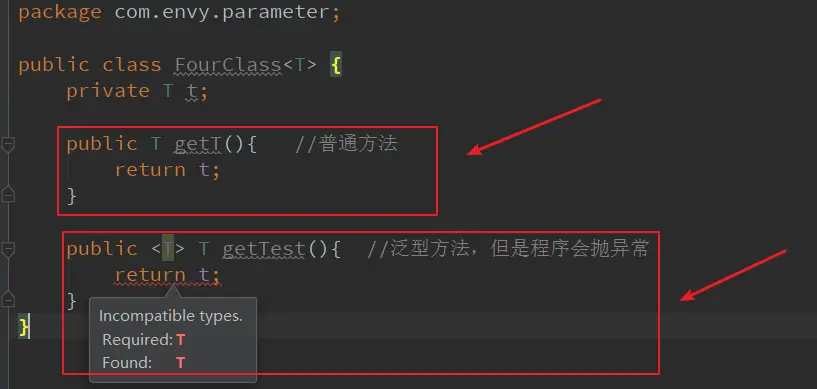 接下来就在其中定义一个泛型方法,很不幸它出错了: