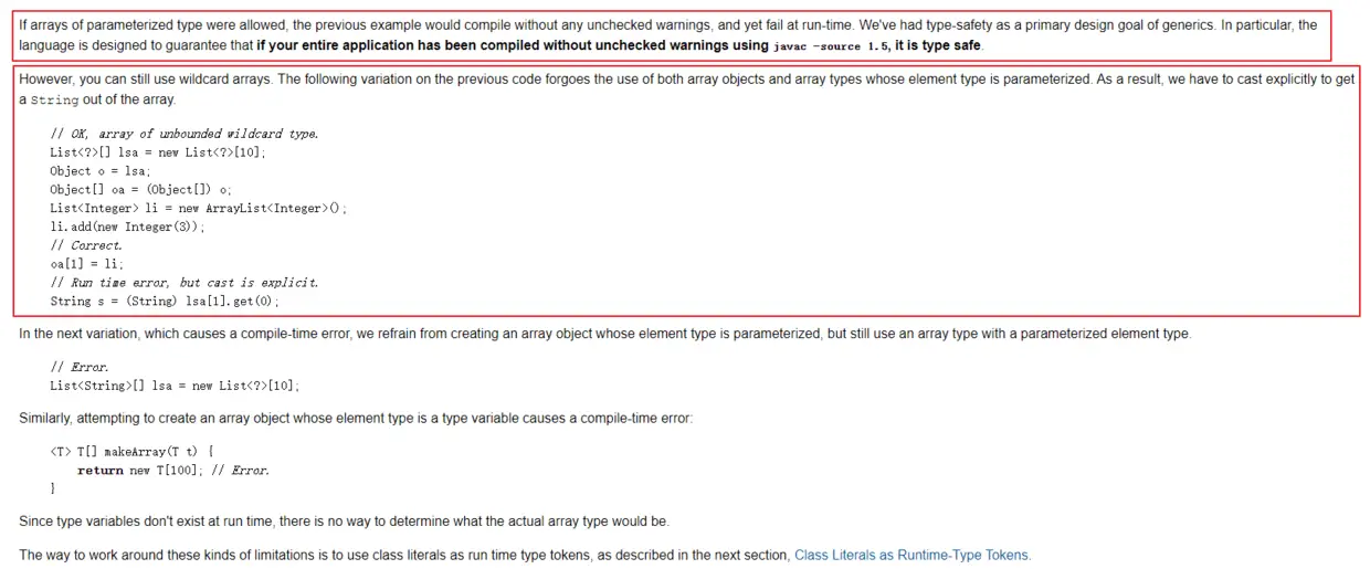 同时请注意数组的元素类型不能是类型变量,这会引发编译时错误: