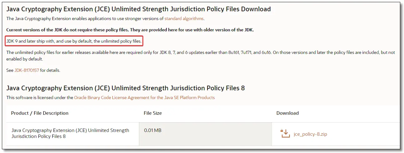 复杂的解决办法:从 Oracle 官网下载对应 JCE,下载链接:https://www.oracle.com/java/technologies/javase-jce-all-downloads.html