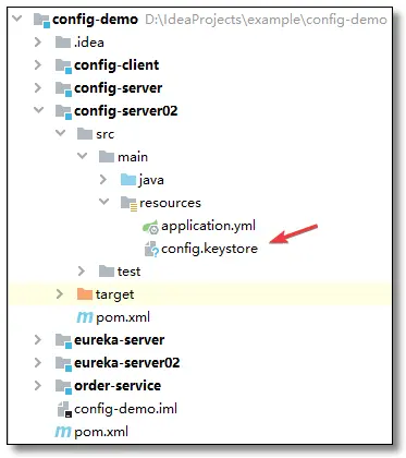 将 config.keystore 文件添加至 Config Server 项目 resources 目录中。