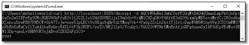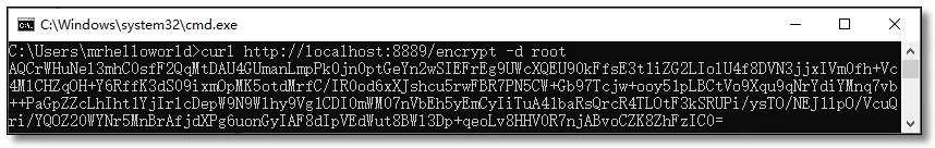 curl http://localhost:8889/encrypt -d root