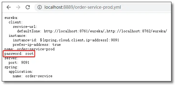 Config Client 访问:http://localhost:9091/password 结果如下: