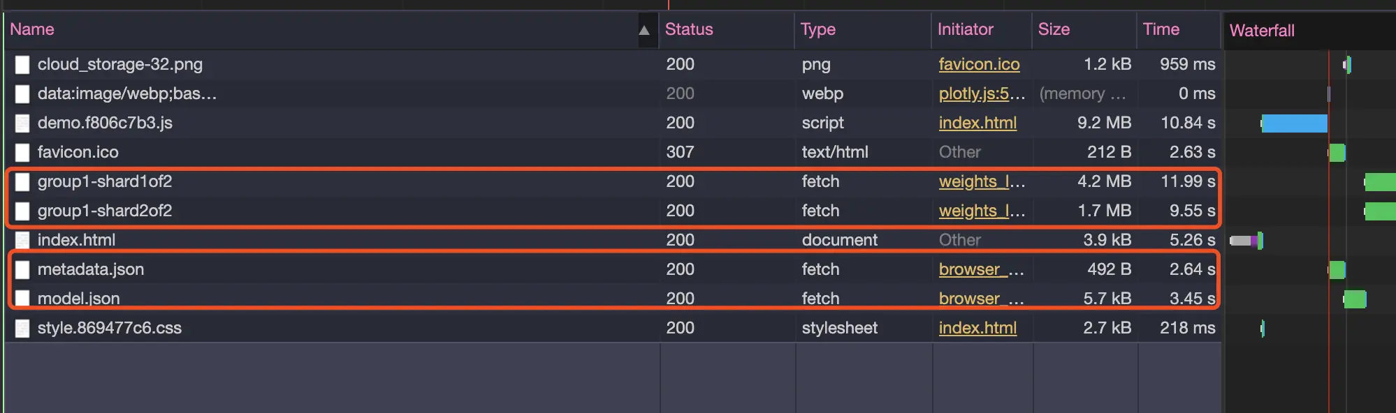 并且, 我们在测试链接里扒下来模型链接和元信息链接以及分片的模型数据(group1-shard1of2, group1-shard2of2)