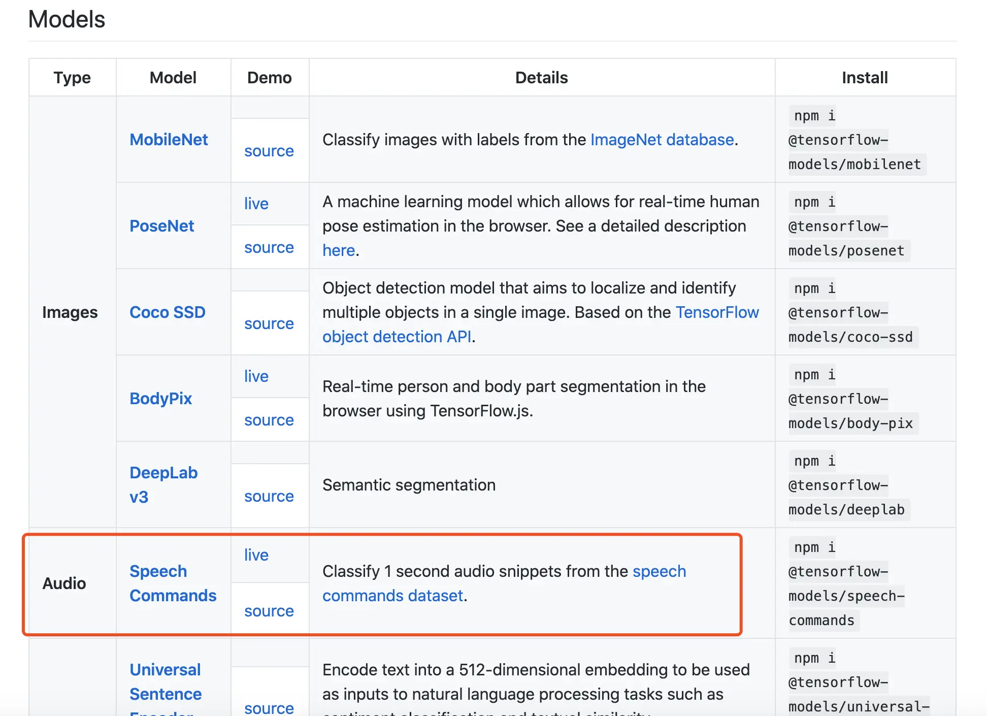一些tensorflow.js模型可以在这里找到: github.com/tensorflow/…