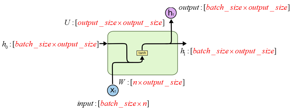 input和h0,下图为RNN中各参数的维度信息[1]: