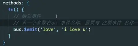 3.发送数据方通过bus.$emit(‘事件名称’,‘发送的数据’)