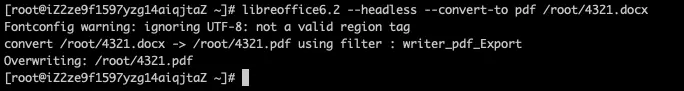 libreoffice6.2 --headless --convert-to pdf /root/4321.docx