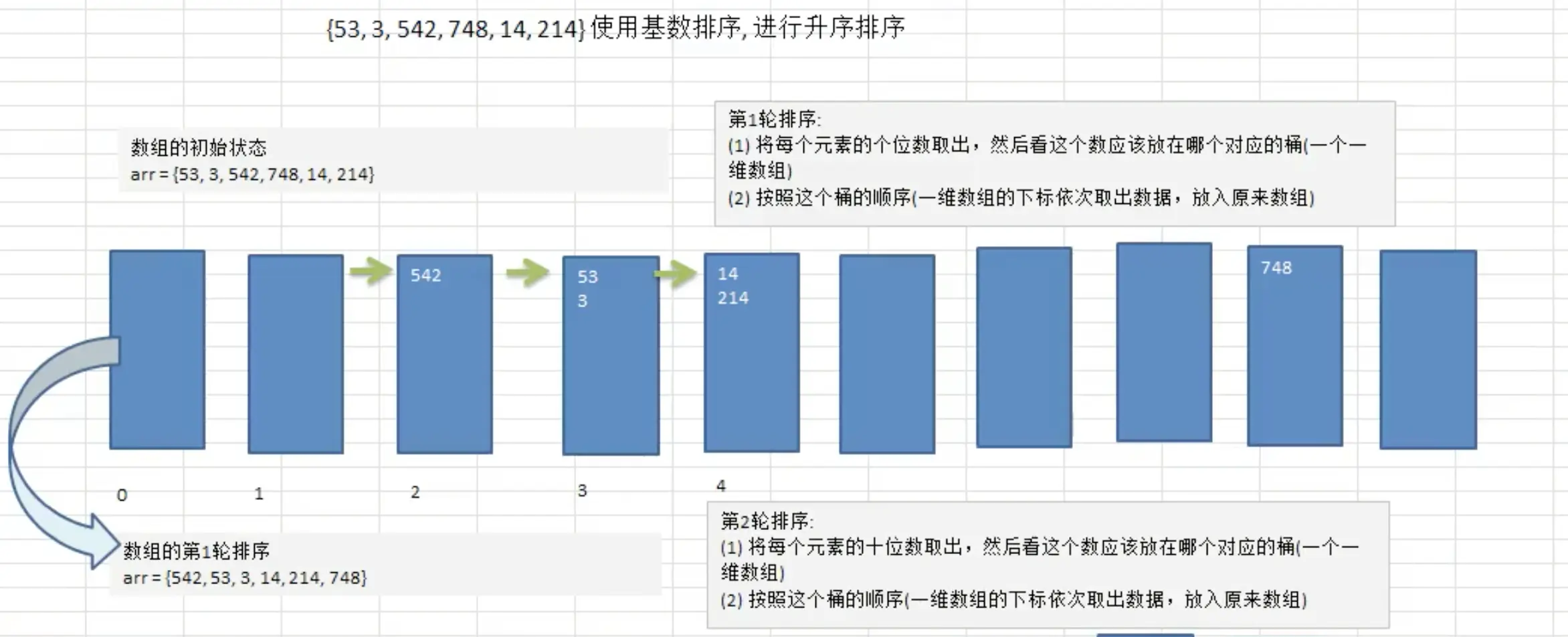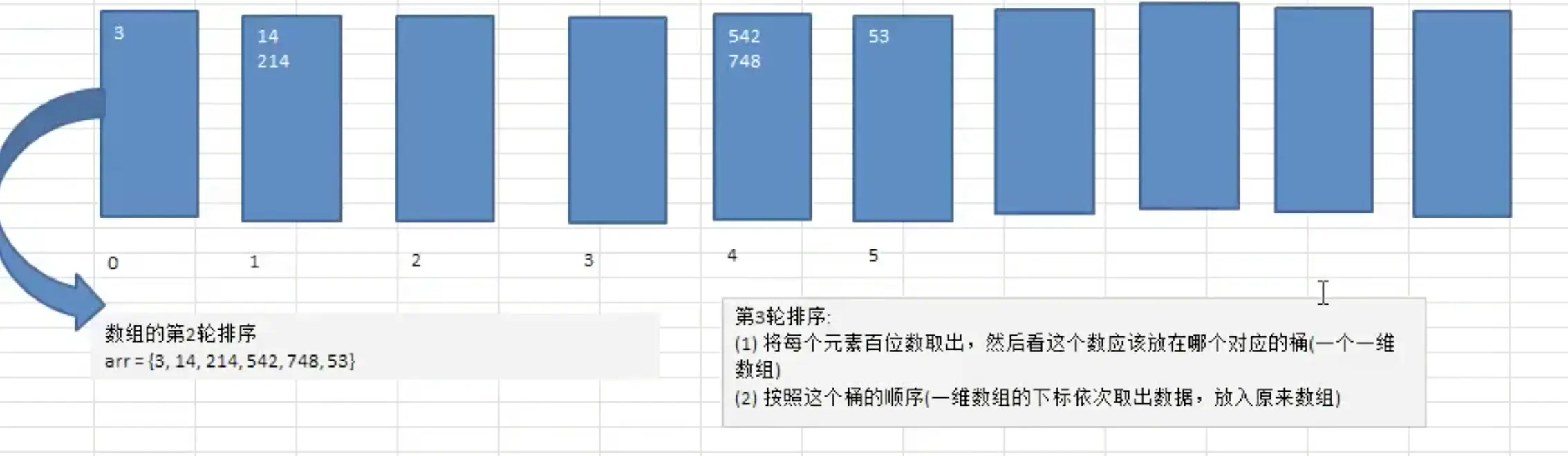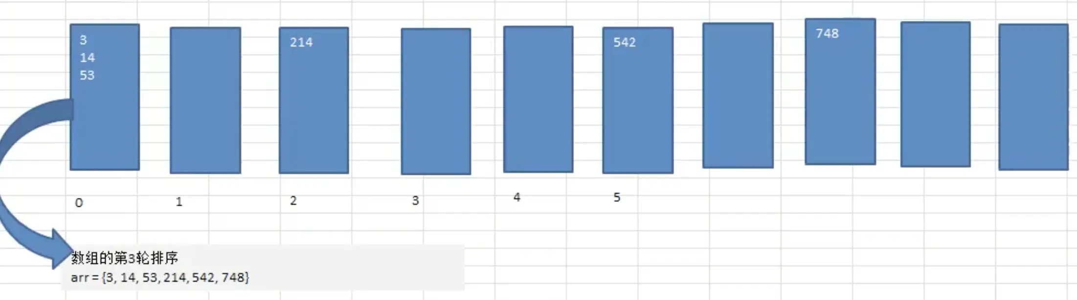 //针对每个元素的对应位进行排序处理,第一次是个位,然后是十位