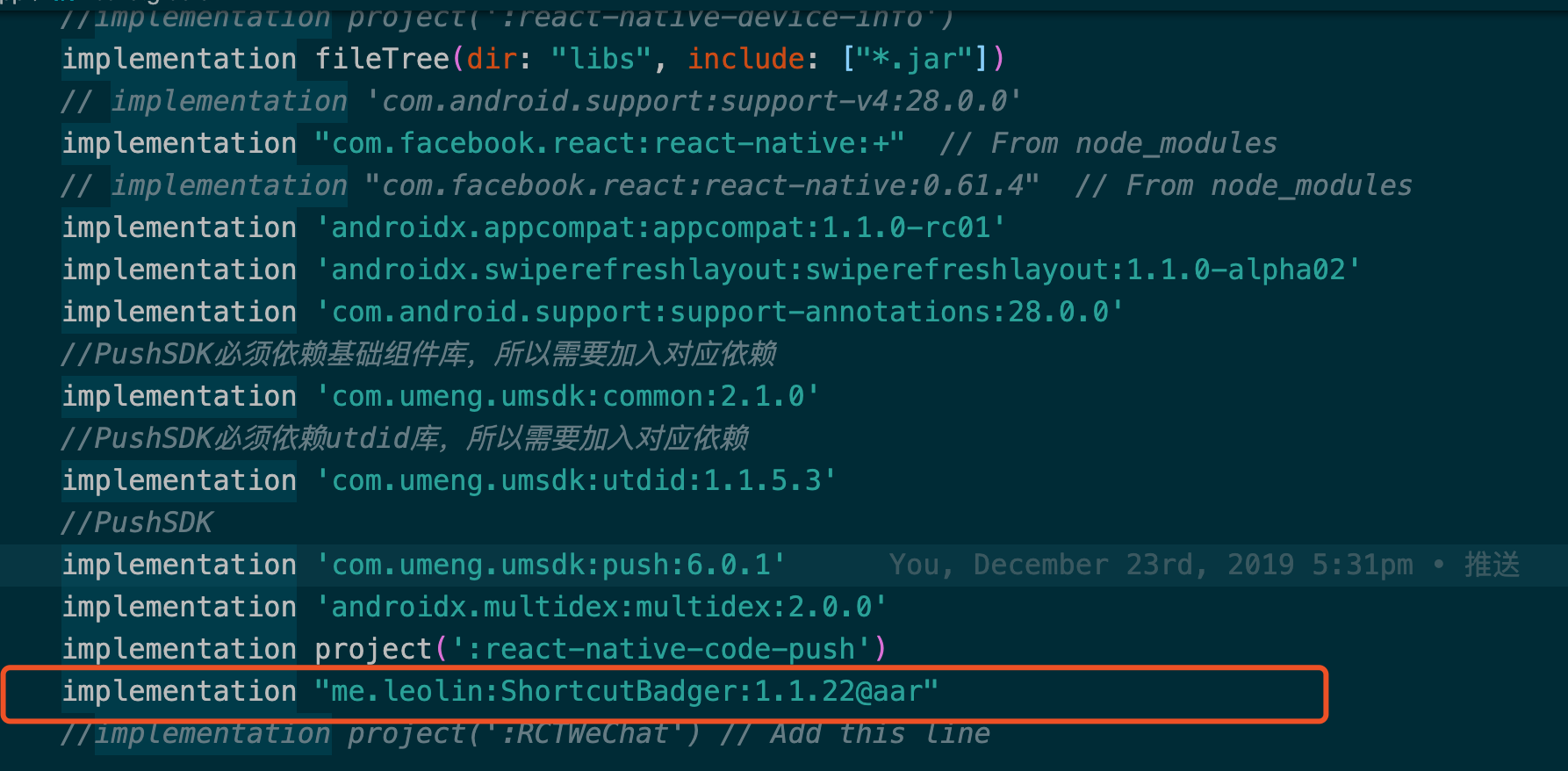 implementation "me.leolin:ShortcutBadger:1.1.22@aar"