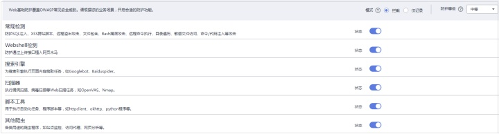 步骤3 :在Web基础防护设置页面,开启Robot检测开关。