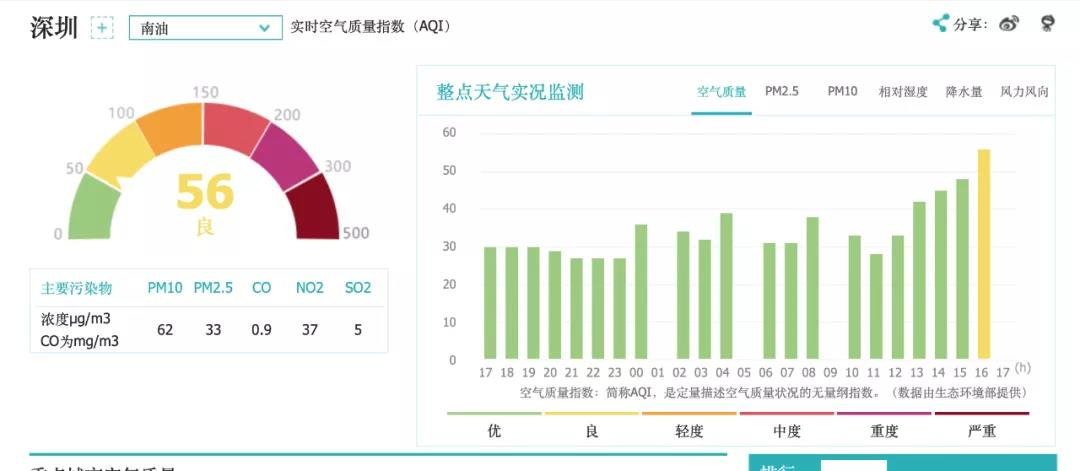 由于我们的节点较少,未覆盖深圳以外地区,所以接下来我们使用了中国气象局及aqicn.org(第三方数据,可信度未知,这里仅做参考)的数据,进行对比,及外源性分析。