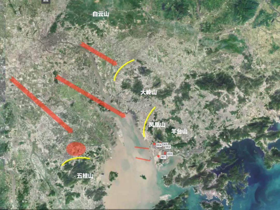 但顺德、中山位于深圳的西北方和西方,为什么我们的系统监测看,似乎仅仅是西方传播源呢?为了进一步了解这个问题,我们接下来看一下地理情况及路径分析。