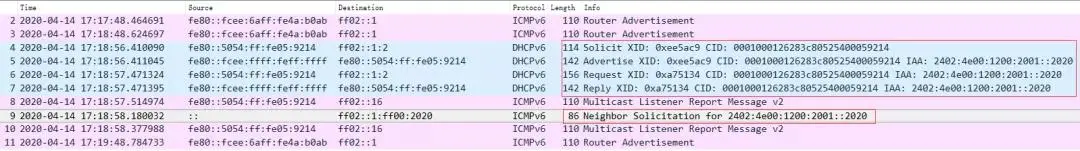 由于CVM不知道 DHCPv6 服务器的 IPv6 地址,所以CVM用组播地址:FF02::1:2向同一链路范围内的所有DHCPv6服务器发送Solicit报文。