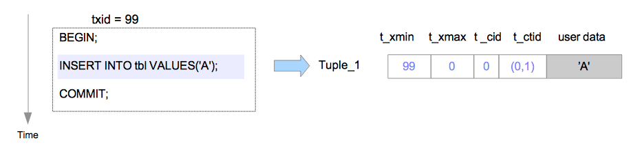- t_xmin用于记录tuple创建时的xid