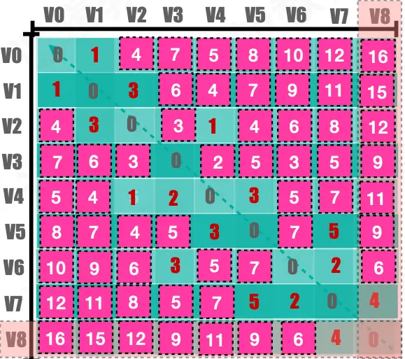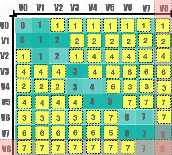 最短路径:V0 -> V1 -> V2 -> V4 -> V3 -> V6 -> V7 -> V8