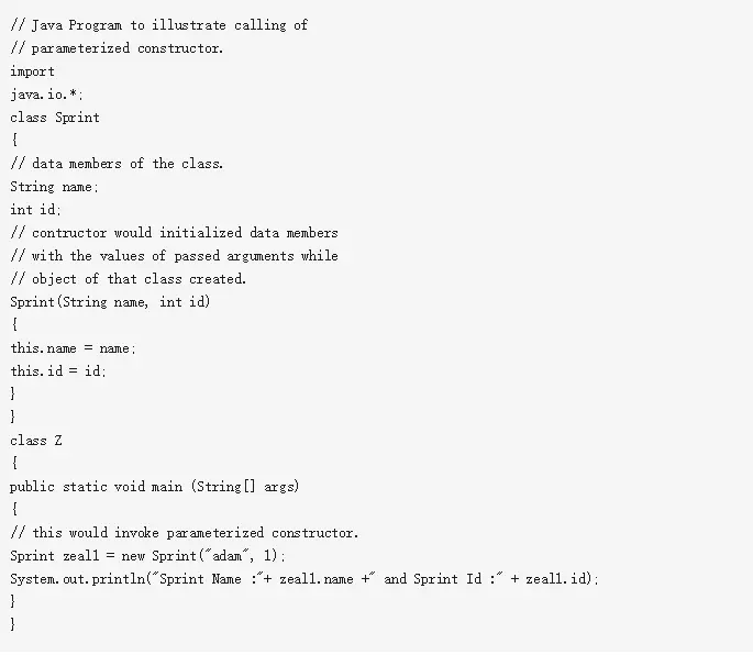 2、参数化构造函数 2.参数化构造函数具有已知参数的构造函数是参数化构造函数。 如果我们想用自己的值初始化类的字段,那么使用*参数构造函数。