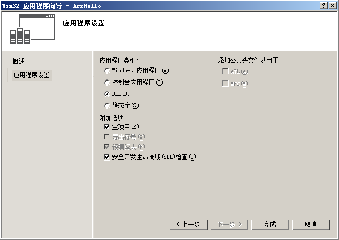 - 新建一个Win32项目,并给项目一个名字,“ArxHello”