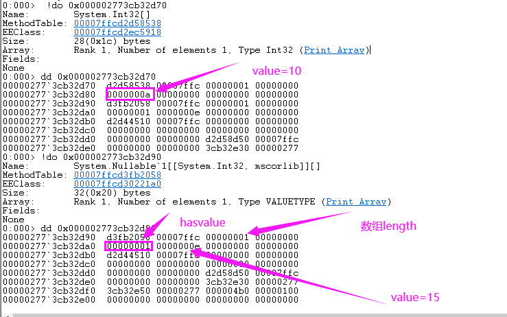 sizeof(000002773cb32d90) = 32 (0x20) bytes (System.Nullable`1[[System.Int32, mscorlib]][])