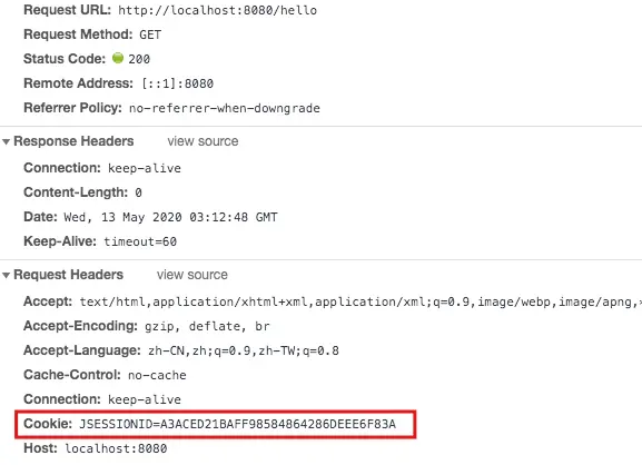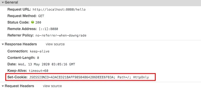 以 Spring Boot 为例,服务端生成 sessionid 之后,返回给前端的响应头是这样的: