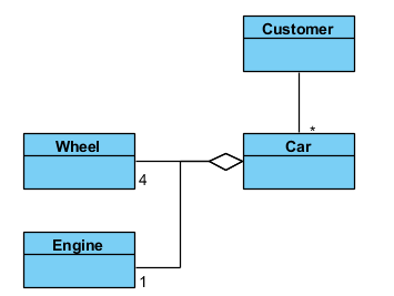 Car、Customer很自然的按照实体进行对待;发动机作为一个产品交付时候有唯一序列号,考虑到其可能的特性我们姑且也视其为实体;因为有4个轮子,可能需要进行区分所以也被视为实体。综上可知,我们先把4个对象都当做实体。因为是建模汽车相关业务,所以我们把Car视为根。至此,我们得到了一个强大的聚合,包含车轮、引擎以及所属人信息。