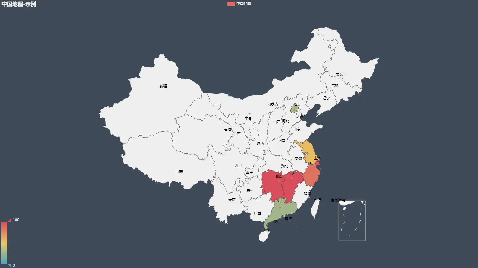 接下来我们来看下如何使用 pyecharts 的 Map 组件来画地图。