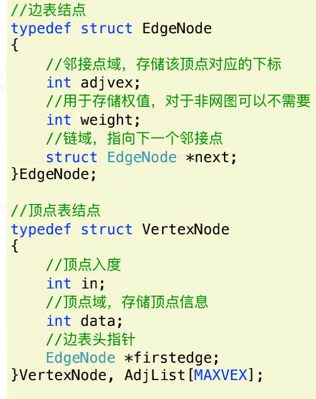 其中in表示入度,data表示顶点信息,firstedge表示边表头指针,指向下一个顶点