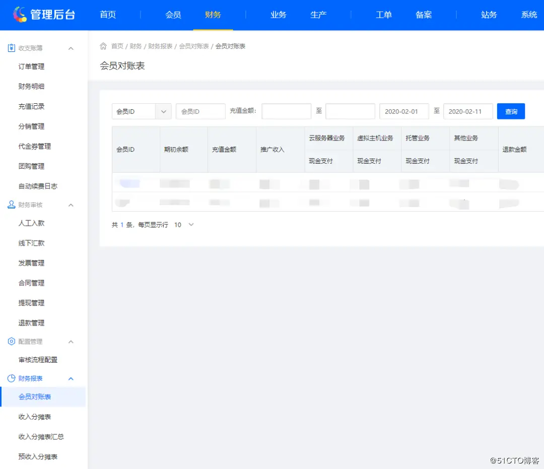 2.管理后台——一站式站点配置,集成生产、产品、备案、财务、工单、会员等模块为企业管理提供综合运营支持。
