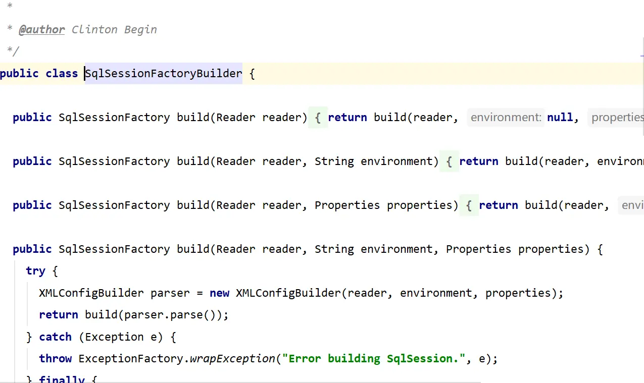 SqlSessionFactory sqlSessionFactory = new SqlSessionFactoryBuilder().build(inputStream);