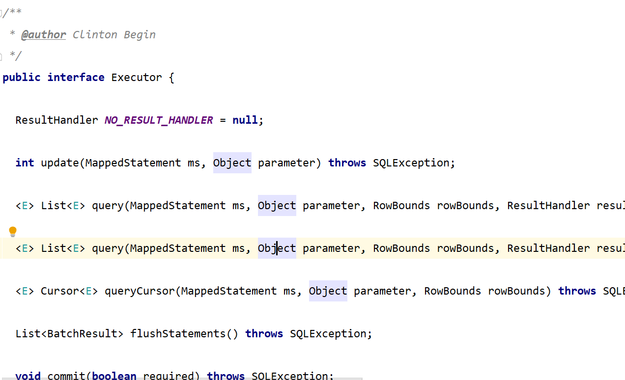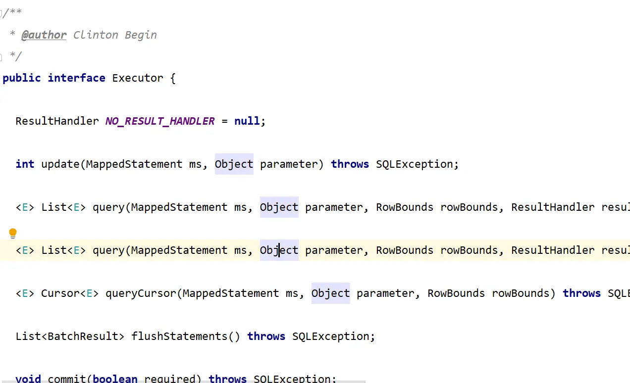 Executor接口用来封装对数据库的操作。调用其中query和update接口会创建一系列的对象,来处理参数、执行SQL、处理结果集,把它简化成一个对象接口就是StatementHandler。