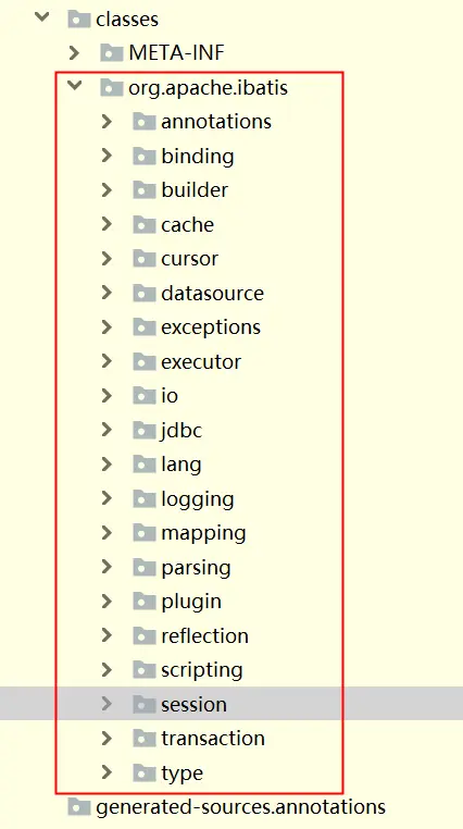 我们打开Mybatis的package,发现类似下面的结构: