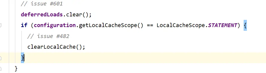 Mybatis的一级缓存是存放在会话(SqlSession)层面的,一级缓存是默认开启的,不需要额外的配置,关闭的话设置localCacheScope的值为STATEMENT。源码的位置在BaseExecutor中,如下图: