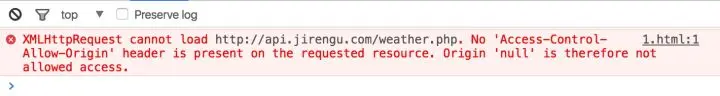 小谷打开控制台,满心期待想看到返回的天气数据,但映入眼帘的是几行红色的警告: