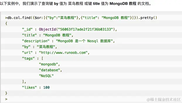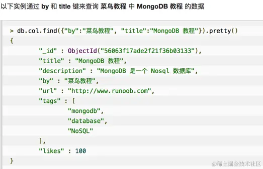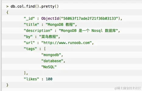 db.set_name.find().limit(10).pretty() # 查询文档,使之呈现结构化处理: