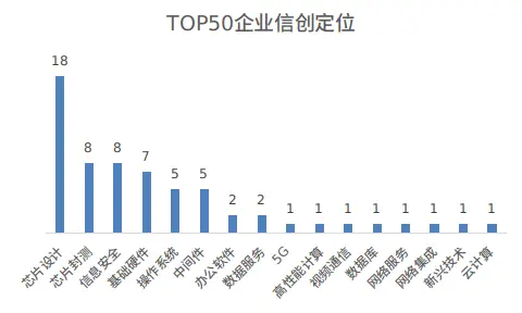 除了芯片、基础软硬件、信息安全等领域,上榜的企业中还有部分在办公软件、数据服务、5G、高性能计算、视频通信、数据库、云计算等领域布局,但相关企业数量较少,均不超过2家。