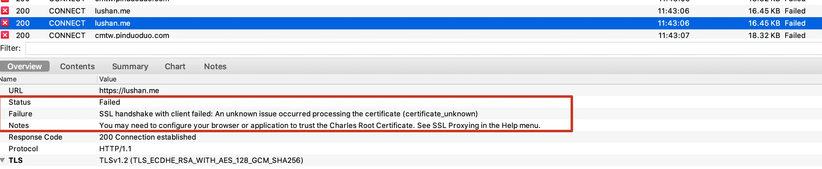 charles 抓包情况