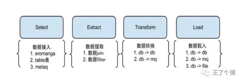 说明:为了更好的支持系统的扩展性和灵活性,将整个同步流程抽象为Select/Extract/Transform/Load,这么4个阶段.