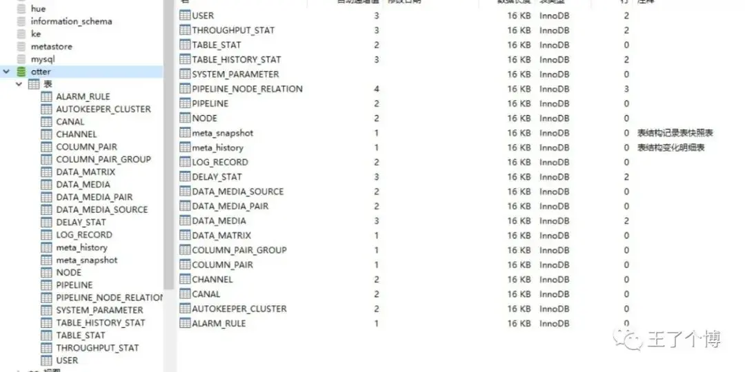 1source otter-manager-schema.sql到mysql上去看下执行的效果