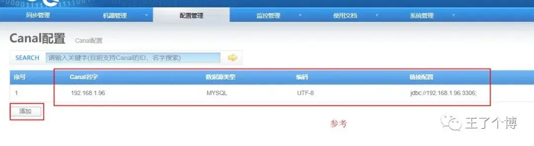 在Otter Manager“配置管理-canal配置”页面点击添加