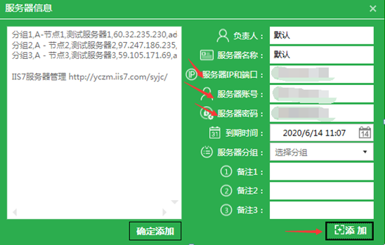 4、单个添加服务器,输入服务器信息并点击添加 服务器IP和端口、服务器账号、服务器密码(必填)
