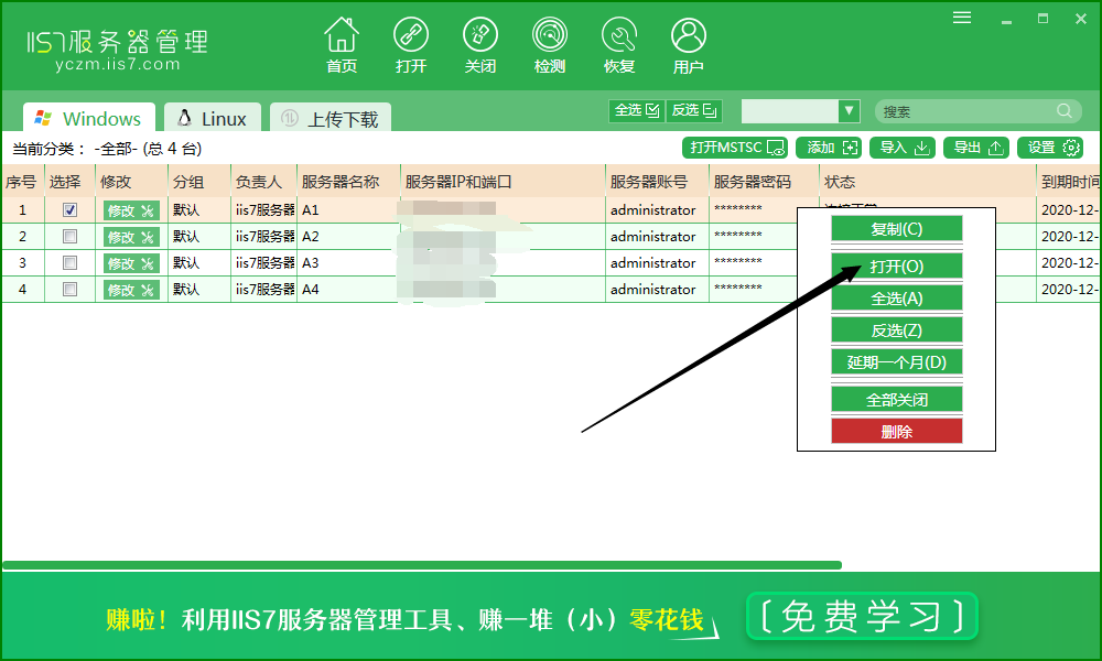 5、点击打开就可以远程操控该服务器了