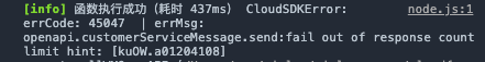 45047 错误码,意思是微信客服消息在向客户推送时,可连续发送20条(也不一定),如果期间客户没有回复,或超过限额,会停止发送,除非客户回复一下。