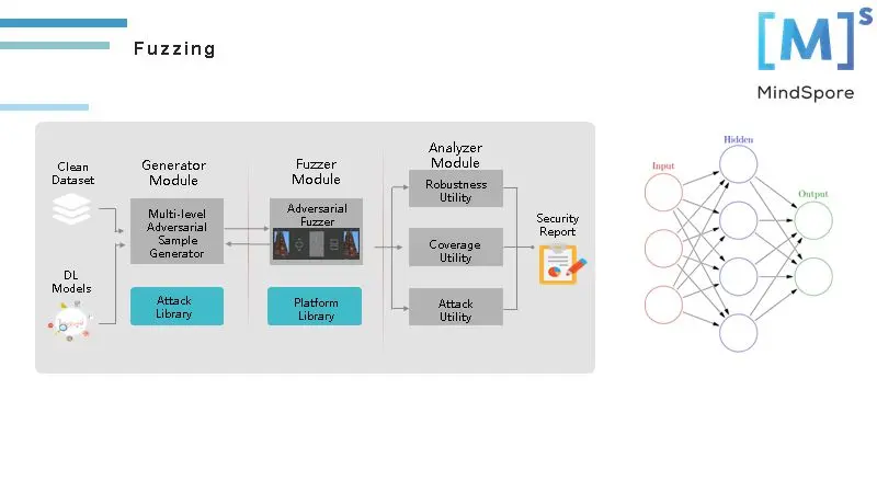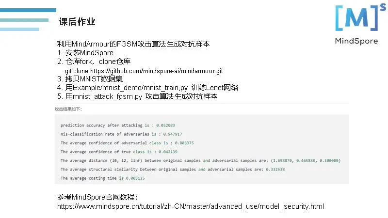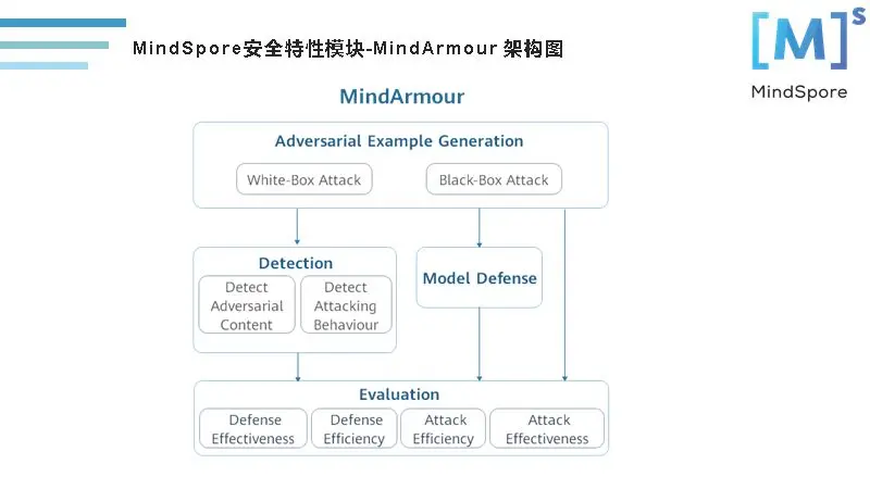 MindArmour和Cleverhans的出发点是一致,都是要做模型的对抗样本安全的研究。从提供的特性来讲,MindArmour做的更全面一些,包括了对抗样本的生成、检测、模型的防御、对抗攻防的评估模块,还有通过fuzzing方式对模型进行鲁棒性测试的模块。