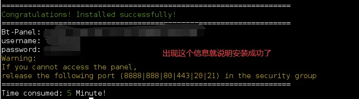 bt4. 这时候我们输入数字14,就能看到宝塔面板的登录地址还有用户名和密码。